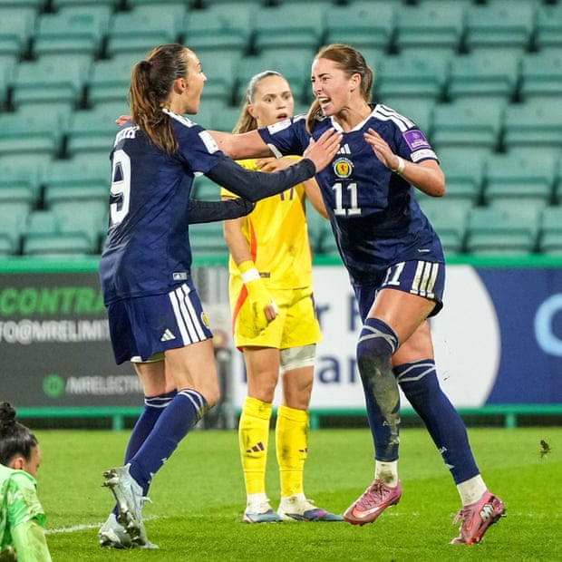 Scotland rescued a dramatic late draw at home to Belgium to stay top of their group in League B. Sari Kees gave Belgium a 15th-minute lead at Easter Road which lasted until deep into stoppage time, when Kathleen McGovern [pictured, right] turned the ball home. Topping the group would secure Nations League promotion, but also open up an easier playoff path to next year's World Cup in this hybrid qualifying format.